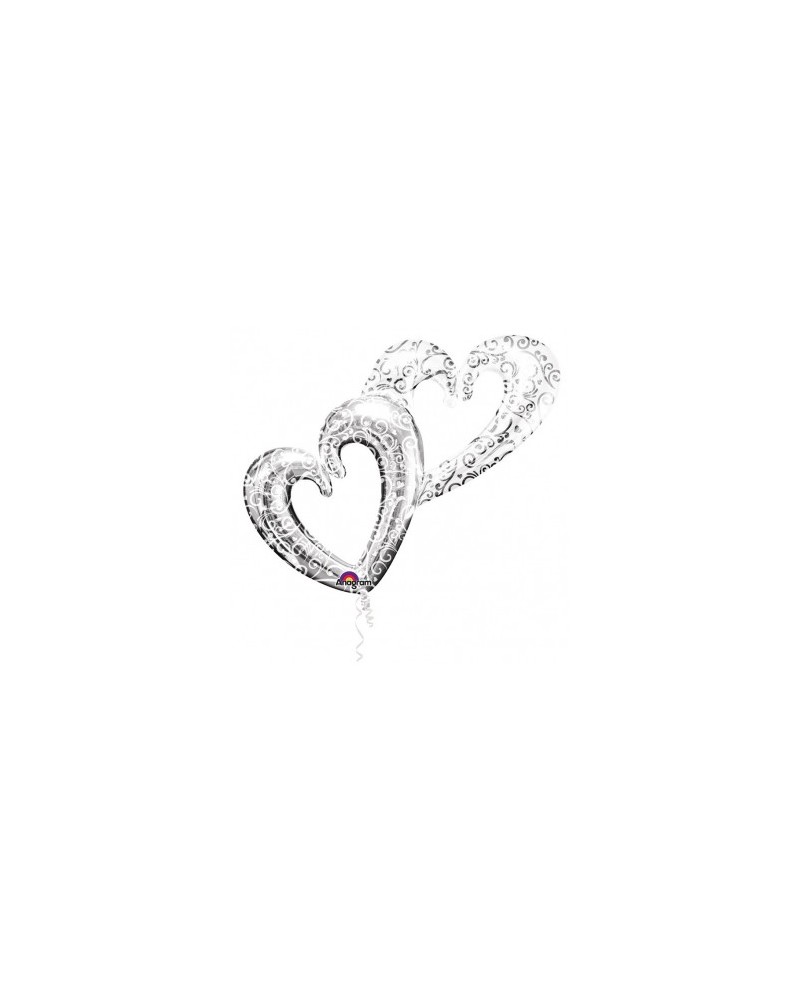 Fóliový balón v tvare strieborných sŕdc s ornamentovými vzormi.