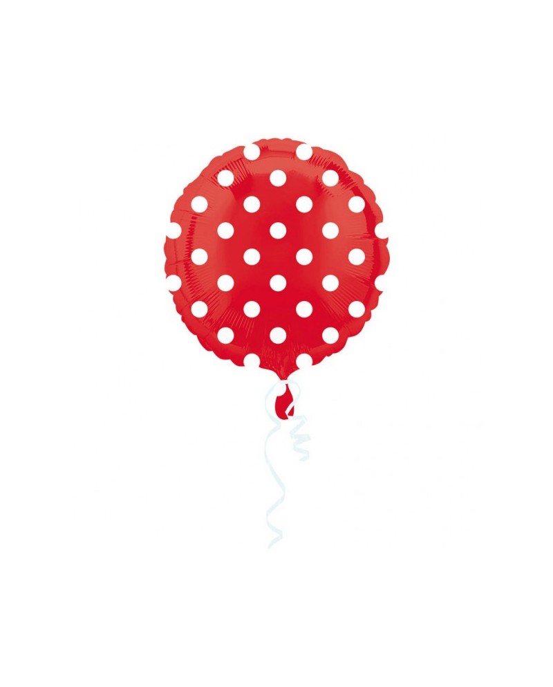 Červený okrúhly fóliový balón s bielymi bodkami je ideálnym doplnkom oslavy narodenín či iných príležitostí.