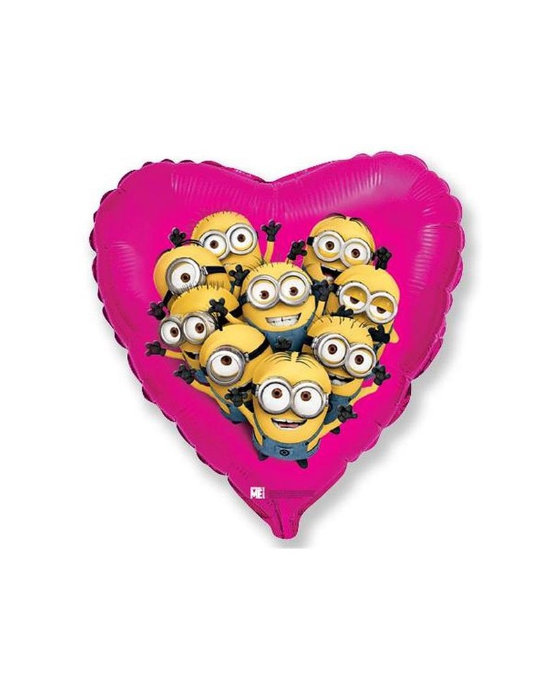 Fóliový balón v tvare ružového srdca s motívom Mimoňov.