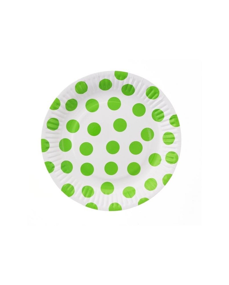 Biele papierové tanieriky so zelenými bodkami sú ideálnym doplnkom oslavy narodenín či každej dobrej party.