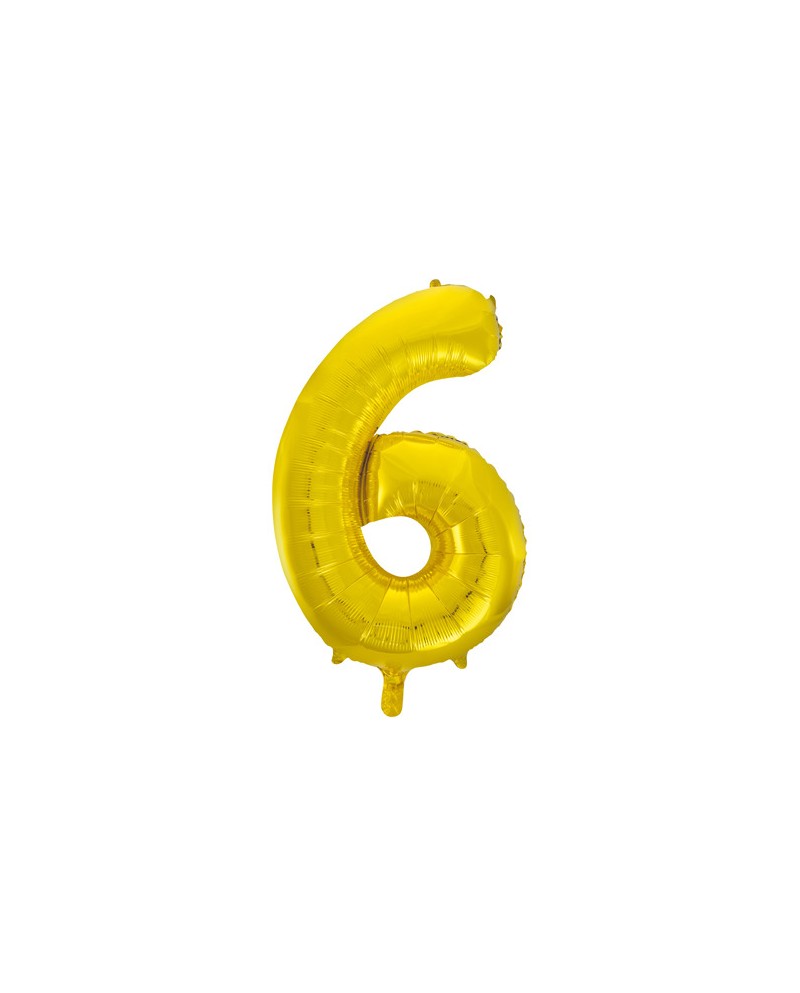 Zlatý fóliový balónik číslo - 6 vo veľkosti 86 centimetrov je perfektným doplnkom narodeninovej oslavy.
