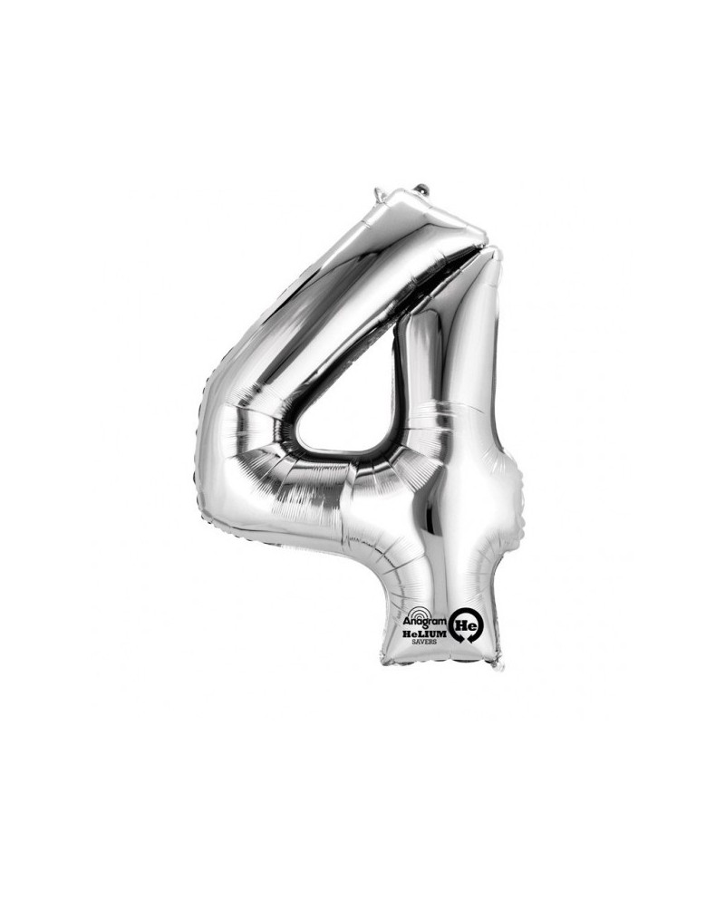 Strieborný fóliový balónik číslo - 4 je perfektným doplnkom narodeninovej oslavy.