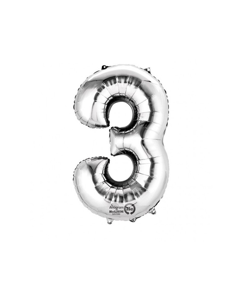 Strieborný fóliový balónik číslo - 3 je perfektným doplnkom narodeninovej oslavy.