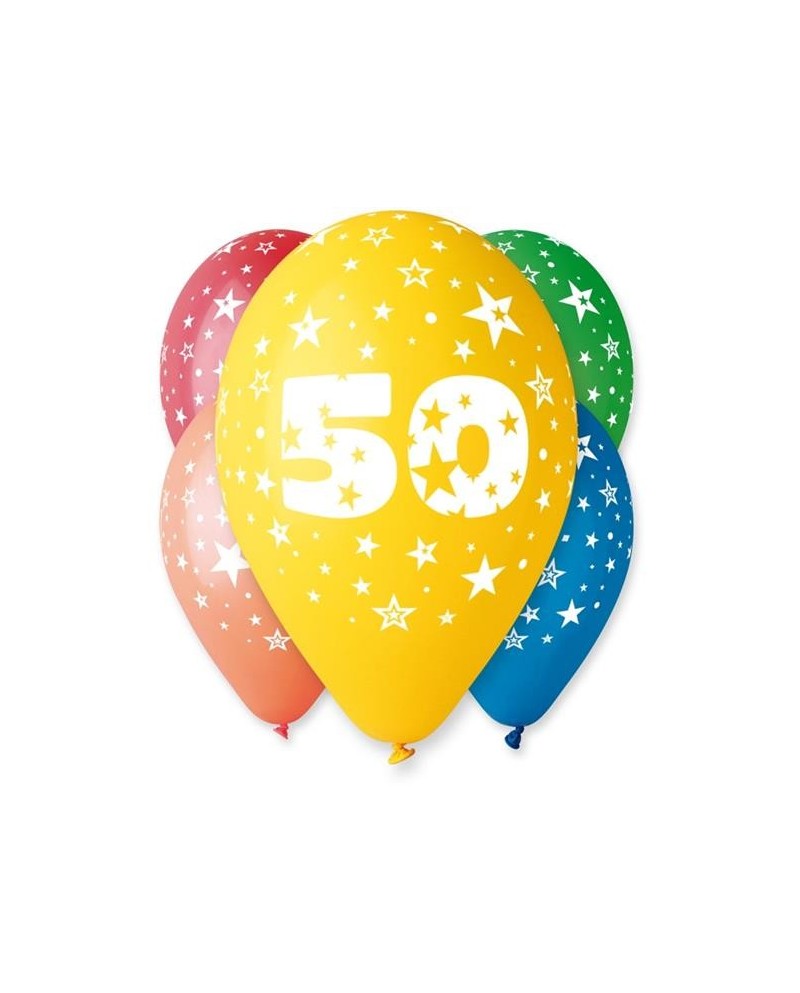 Rôznofarebné latexové balóniky s číslicou 50 a hviezdami sú ideálnym doplnkom oslavy 50. narodenín.