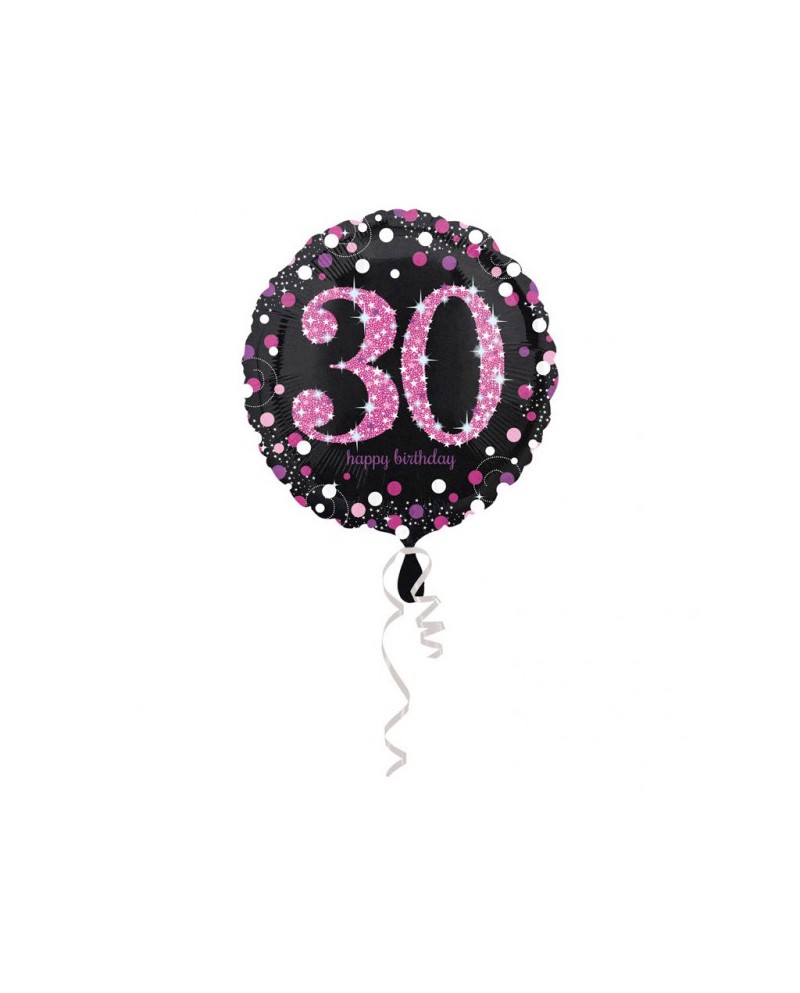 Fóliový balón s číslicou 30 v čierno-ružovom prevedení je ideálnym doplnkom oslavy 30. narodenín.