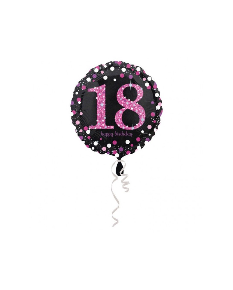 Fóliový balón s číslicou 18v čierno-ružovom prevedení je ideálnym doplnkom oslavy 18. narodenín.