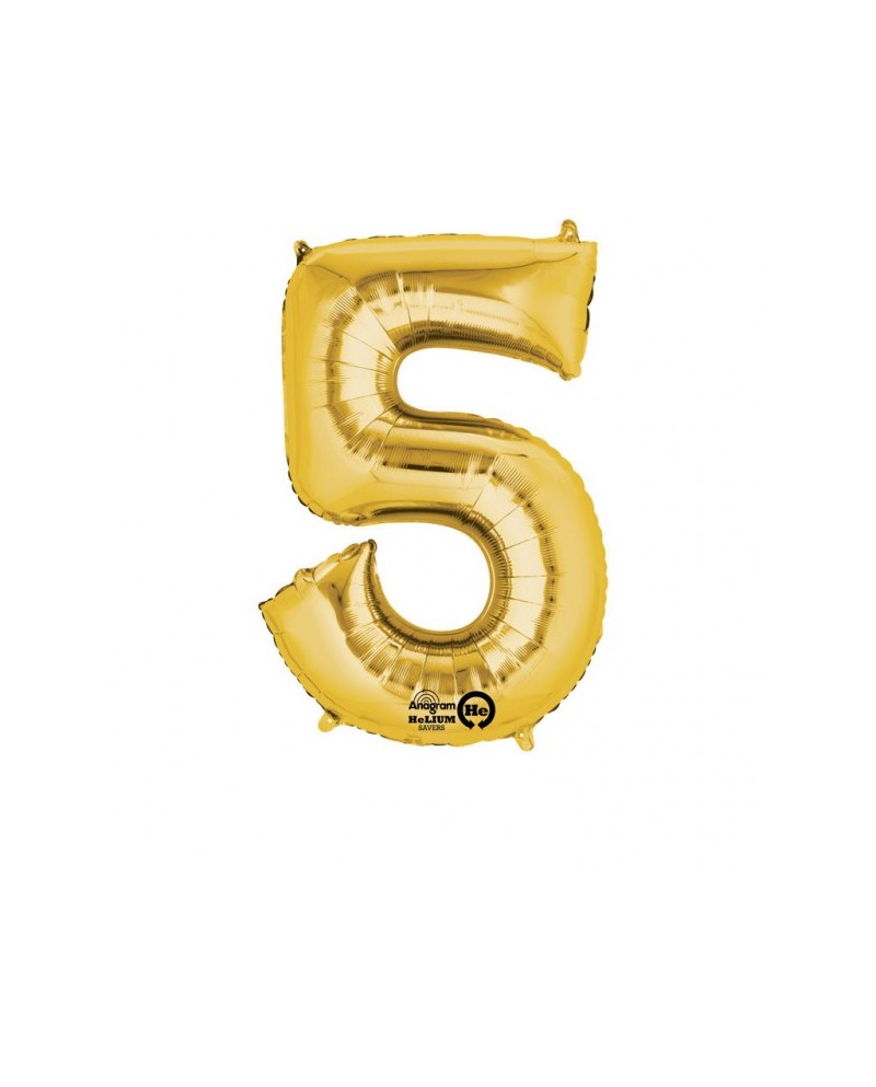 Zlatý fóliový balónik číslo - 5 je perfektným doplnkom narodeninovej oslavy.