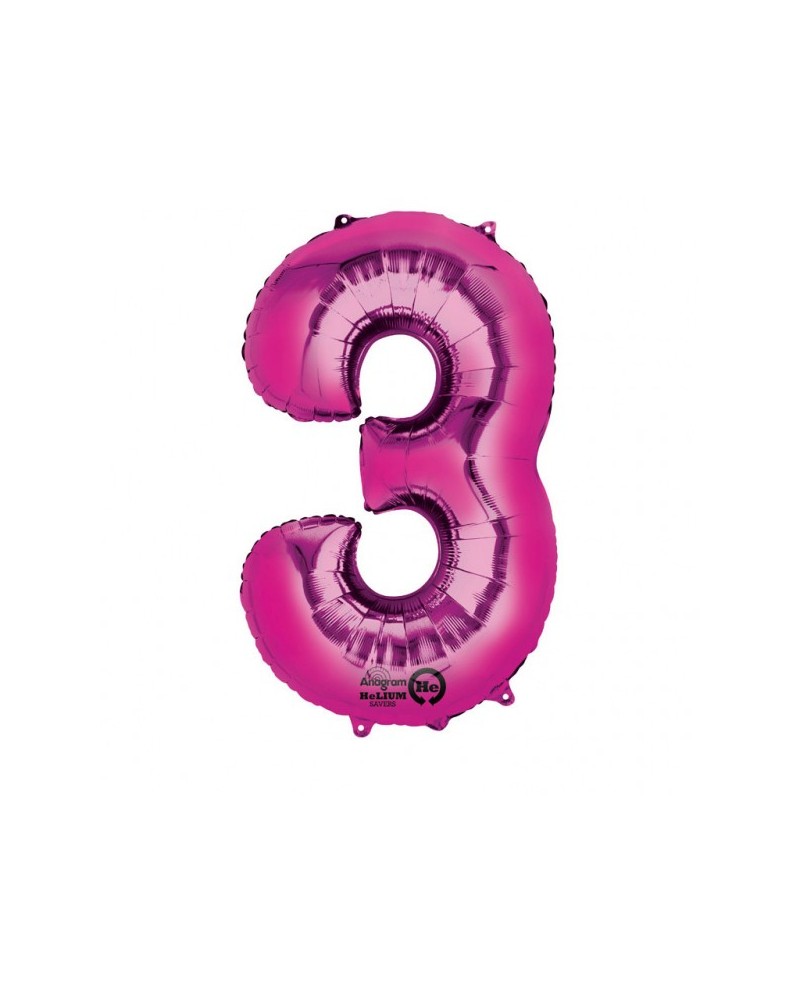 Ružový fóliový balónik číslo - 3 je perfektným doplnkom narodeninovej oslavy, oslavy výročia alebo akejkoľvek inej party.