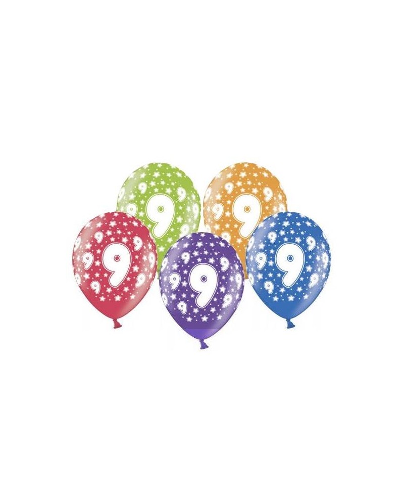 Rôznofarebné latexové balóniky s číslicou 9 a hviezdami sú ideálnym doplnkom oslavy 9. narodenín.