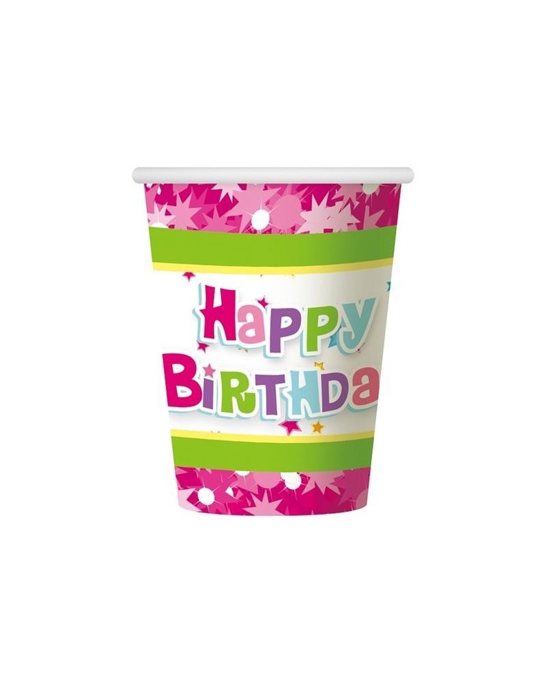 Papierové poháre s nápisom Happy Birthday v ružovej farbe sú perfektným doplnkom každej oslavy narodenín.