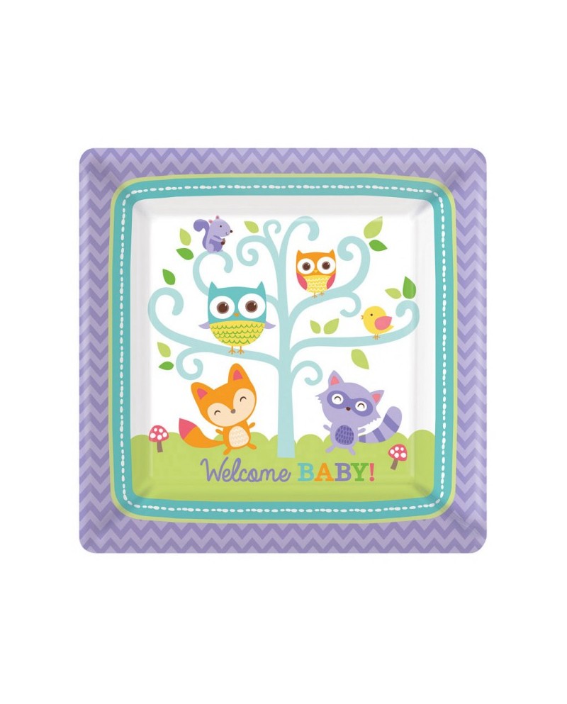 Papierové tanieriky s motívom zvieratiek z lesa a nápisom Welcome baby!