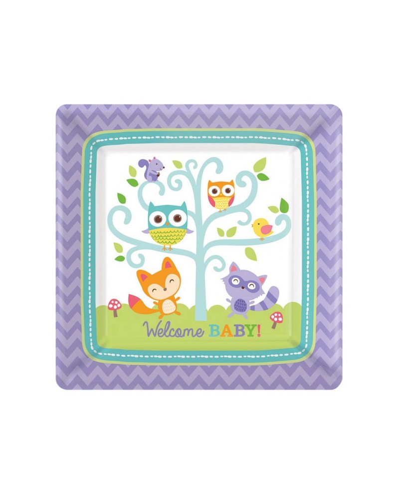 Papierové tanieriky s motívom zvieratiek z lesa a nápisom Welcome baby!