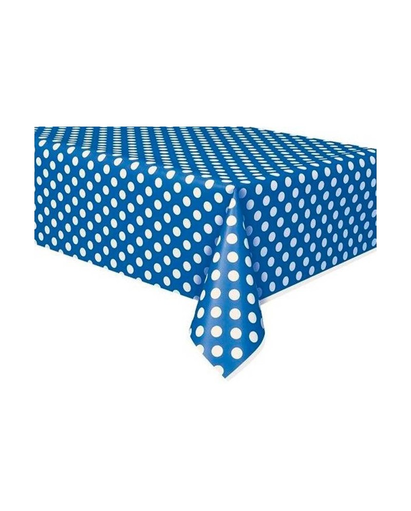Tmavomodrý fóliový obrus s bielymi bodkami je perfektným doplnkom narodeninovej oslavy či rôznej party.