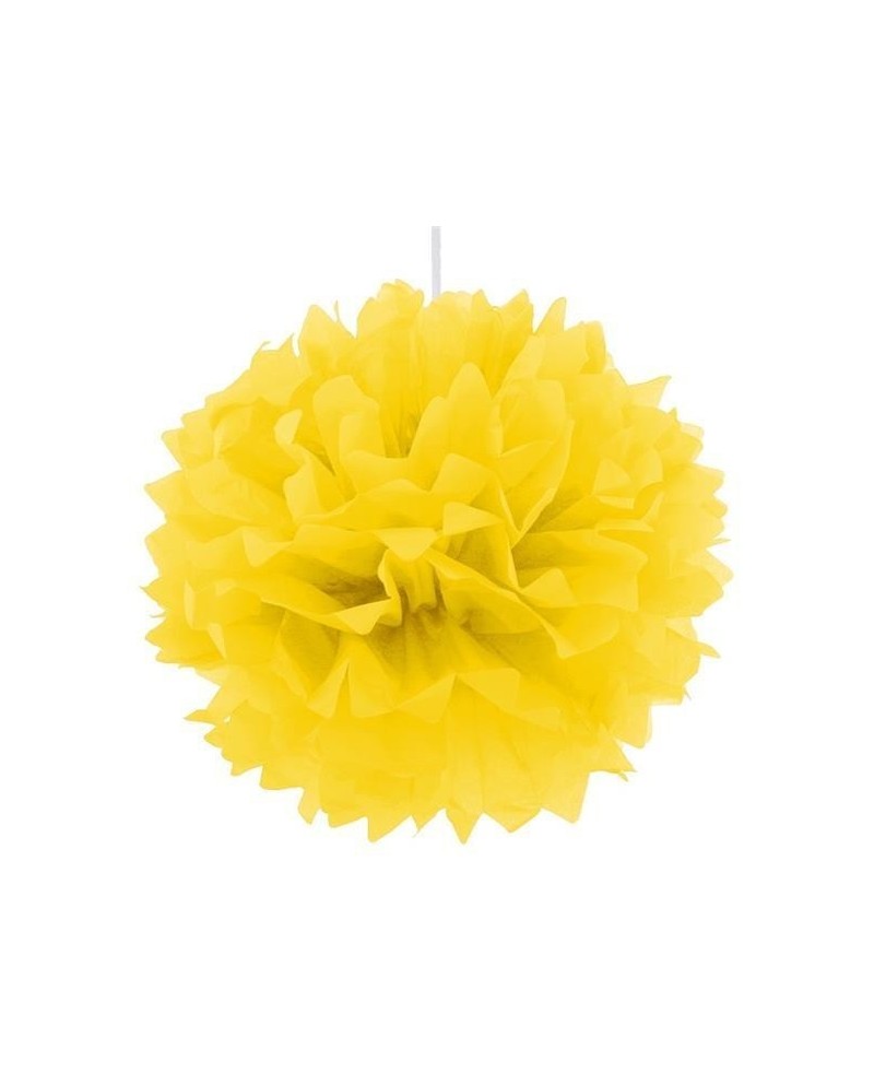 Visiaca žltá papierová dekorácia v tvare kvetu je ideálnou ozdobou miestnosti.
