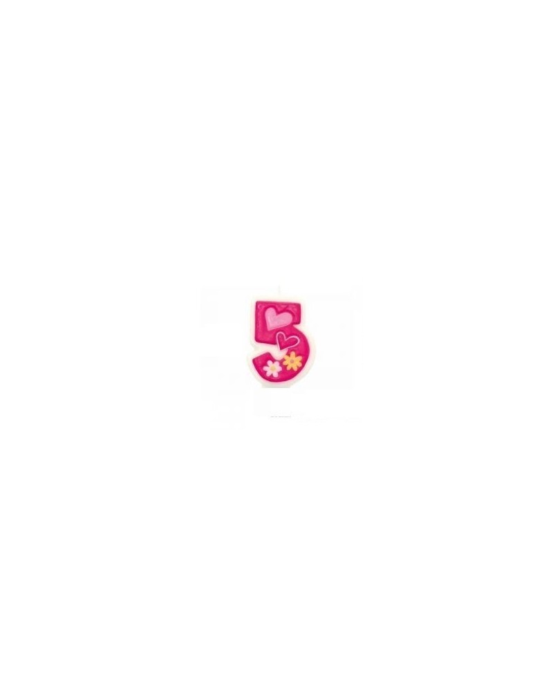 Ružová sviečka v tvare čísla "5" s kvetinkami.