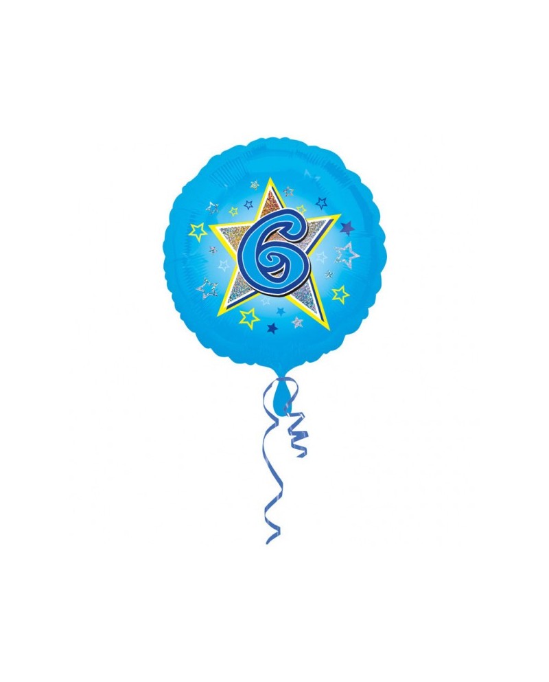 Modrý fóliový balónik s číslom 6 a s hviezdou vo veľkosti 47 centimetrov je perfektným doplnkom oslavy 6. narodenín.