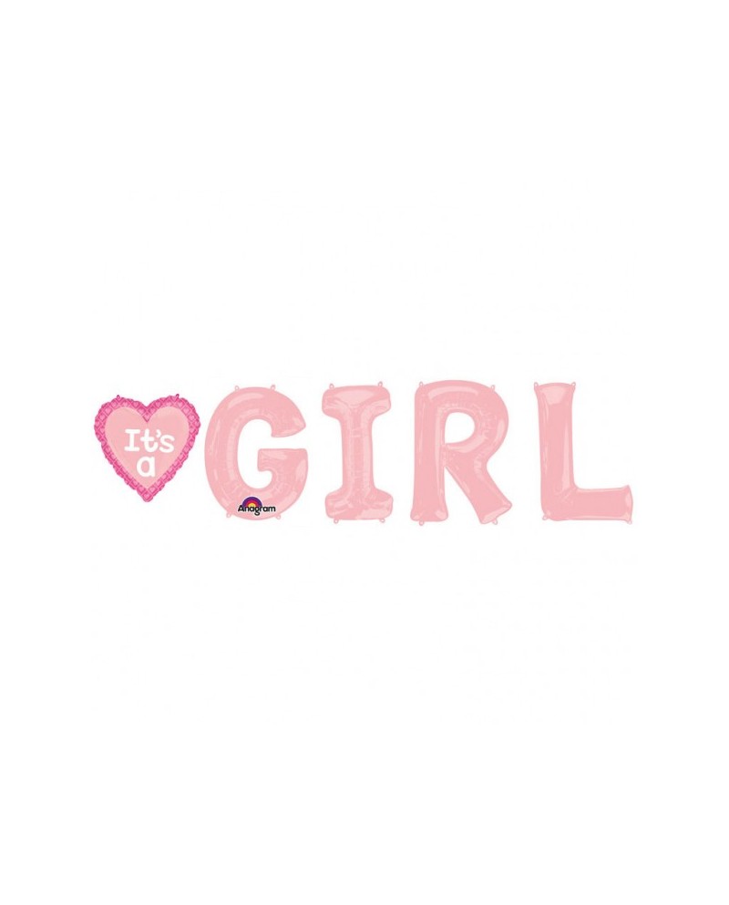 Ružový fóliový balónik GIRL so srdiečkom je perfektným doplnkom oslavy narodenia dieťaťa. Celý nápis tvorí 5 samostnaných balónikov.