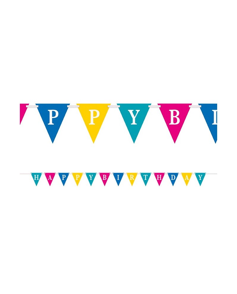 Visiaci fóliový banner vlajok v rôznofarebnom prevedení a s nápisom Happy Birthday je perfektnou dekoráciou narodeninovej oslavy či inej party.