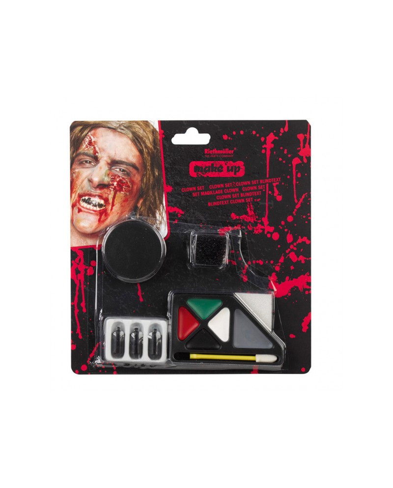 Balenie: 1x 3,8g make-up faloš. tvár, 5x farba na tvár- 1,8g - červená, zelená, biela, čierna, sivá, 3x falošná krv 1,1ml, 1x hubka na nanášanie, 1x aplikátor