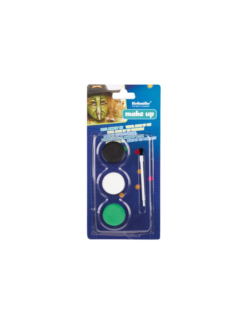 Make-up sada obsahuje 3 farby - bielu, čiernu a zelenú, pomocou ktorých viete vytvoriť masku zlej čarodejnice alebo známej postavy Shreka. Fantázie sa medze nekladú a preto je len na Vás, čo sa Vám podarí vykúzliť s týmito farbami na tvár.