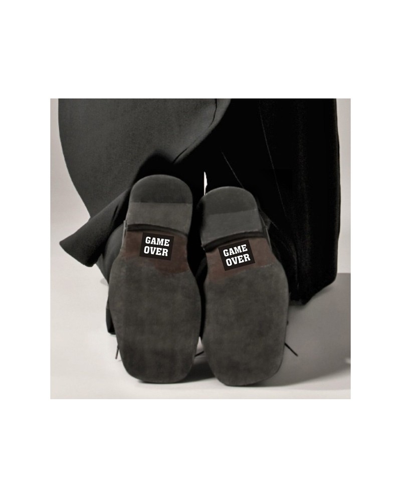Čierne samolepky na topánky s nápisom "GAME OVER" - t.z. Koniec hry.