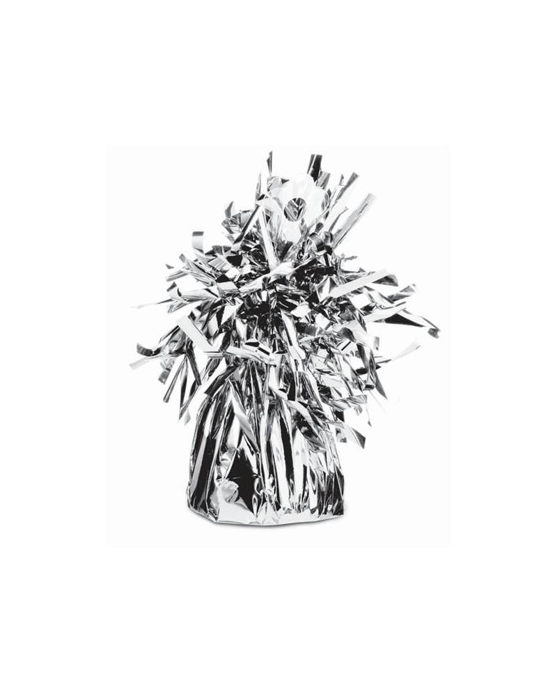 Závažie na udržanie viacerých balónikov naplnených héliom v striebornej farbe.