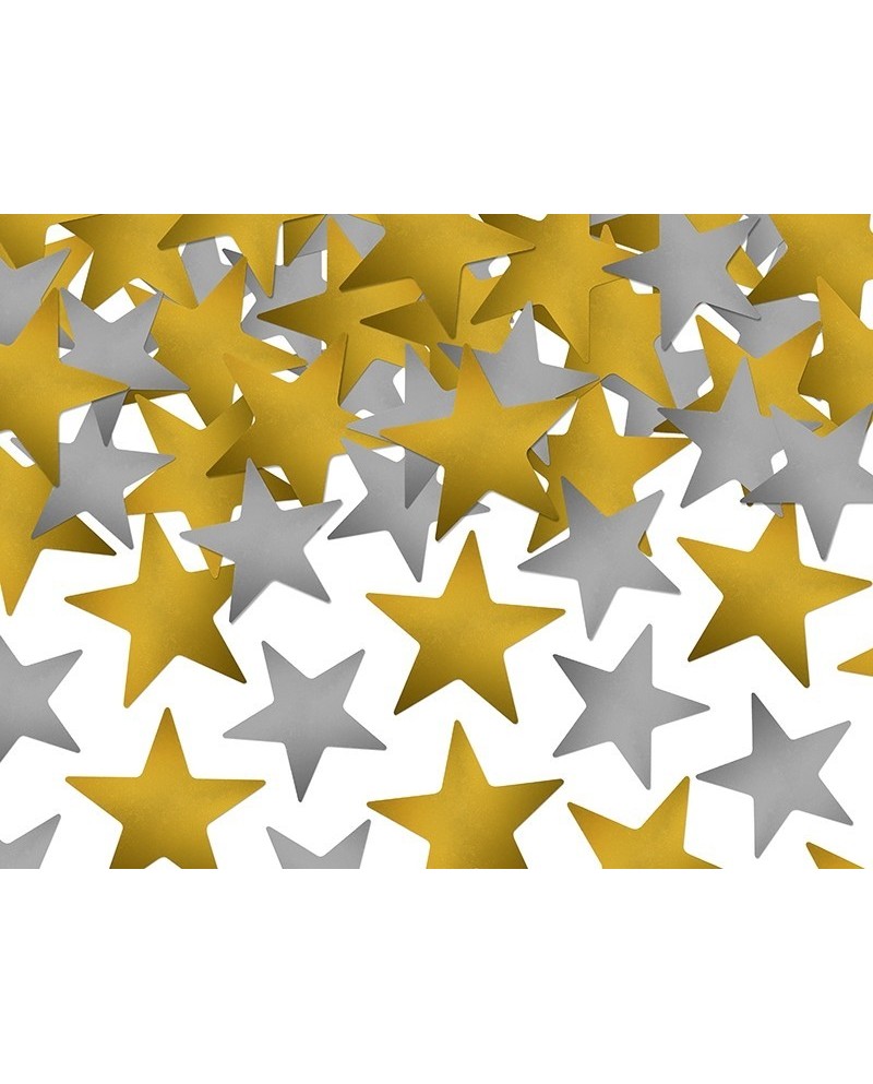 Konfety v tvare hviezd v zlatej a striebornej farbe sú perfektnou ozdobou narodeninovej oslavy, ale aj oslavy Silvestra či Nového roka.