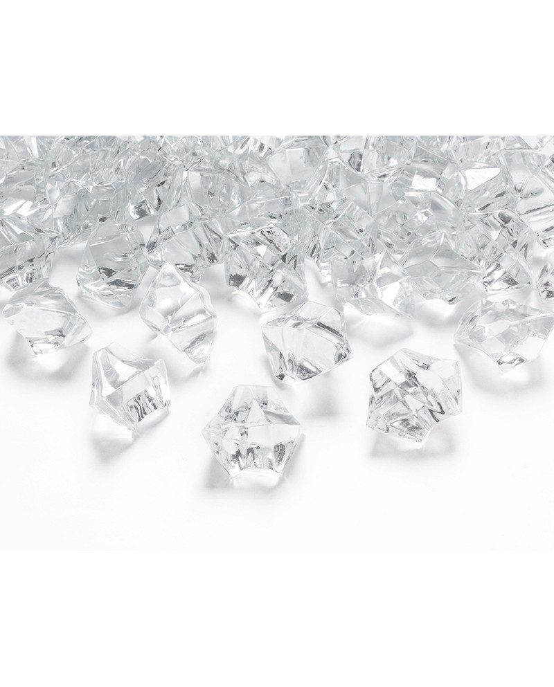Bezfarebná dekorácia v tvare umelého krištáľového ľadu vo veľkosti 2,5 x 2,1 cm.