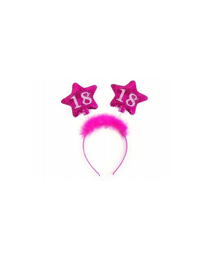 Ružová čelenka s hviezdami a strieborným číslom 18 je ideálnou zábavkou oslavy 18. narodenín.