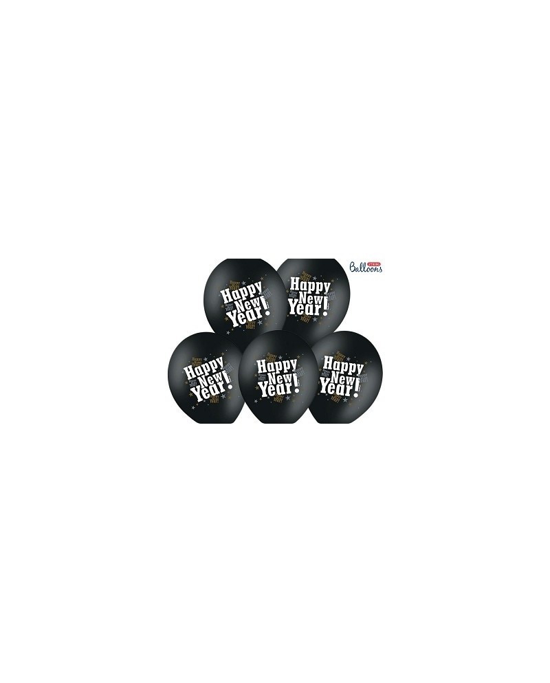 Čierne latexové balóniky s podtlačou "Happy New Year!" Šťastný nový rok sú perfektným doplnkom silvestrovskej party.