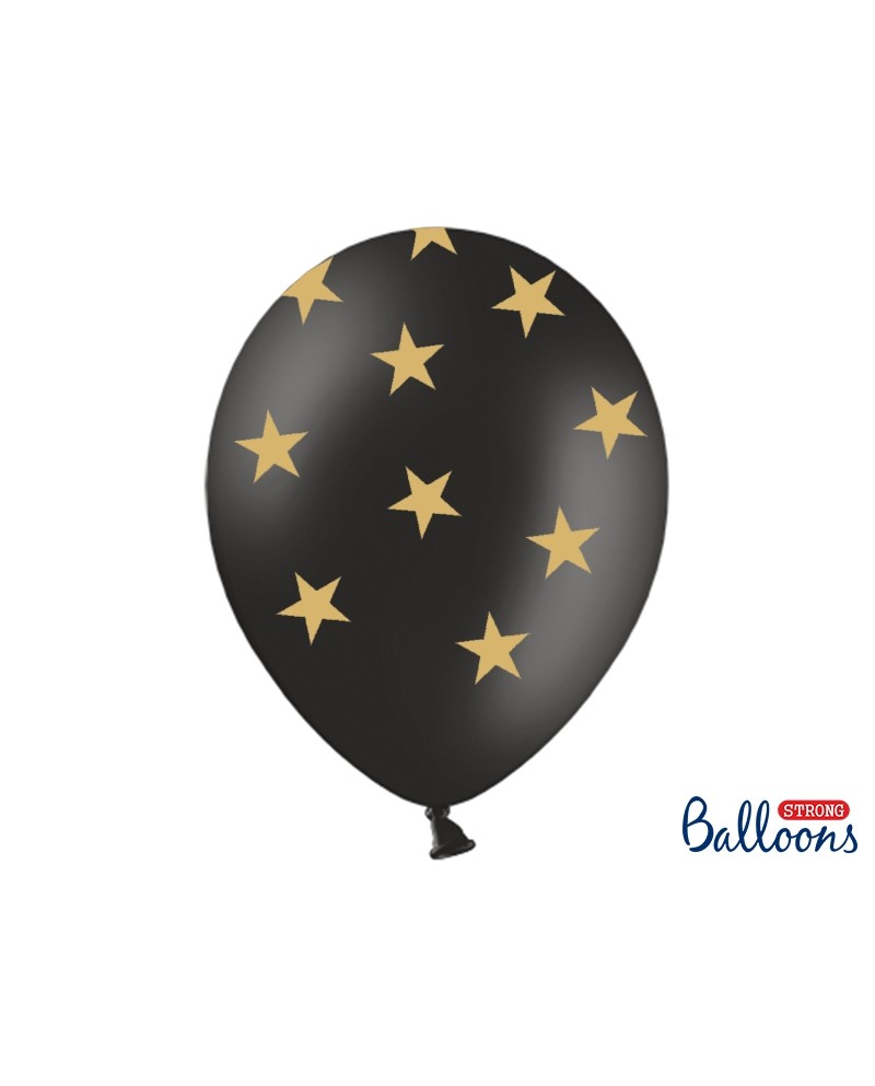 Latexové balóny čierne -zlaté hviezdy 30cm 10ks