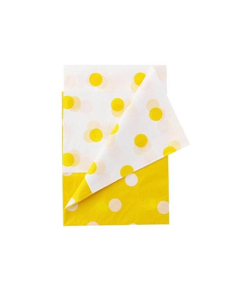 Žlto-biely fóliový obrus so žltými a bielymi bodkami je ideálnym doplnkom oslavy narodenín či rôznej party.