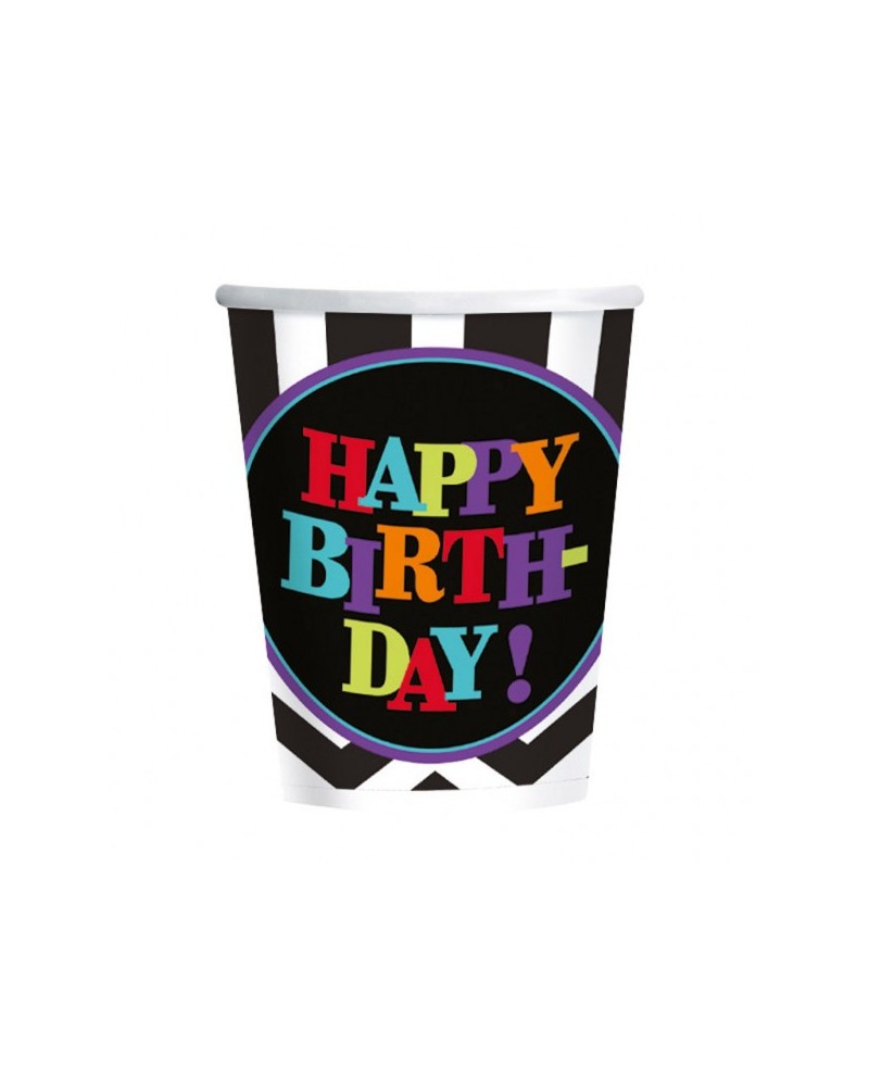 Poháre Happy Birthday- čierno-farebné - 266ml 8ks
