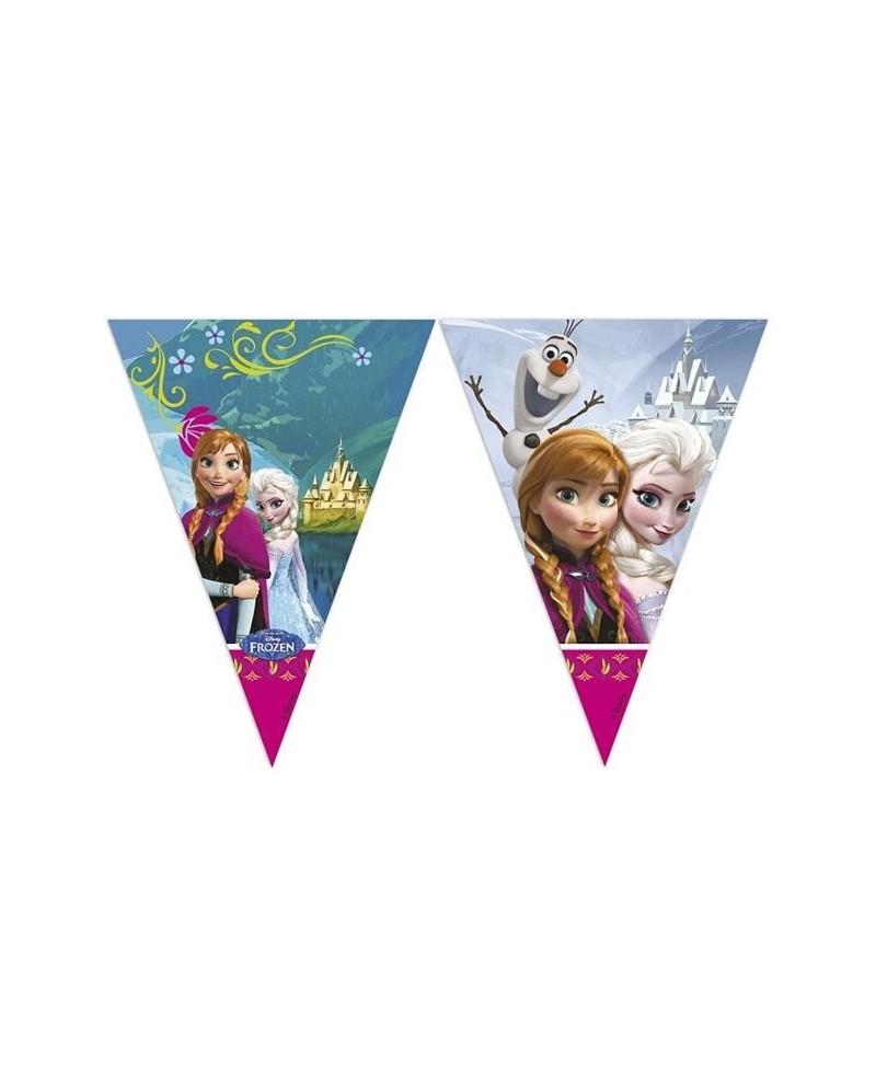 Visiaci fóliový banner vlajok s motívom Frozen - Ľadové kráľovstvo je perfektnou dekoráciou vašej oslavy narodenín.