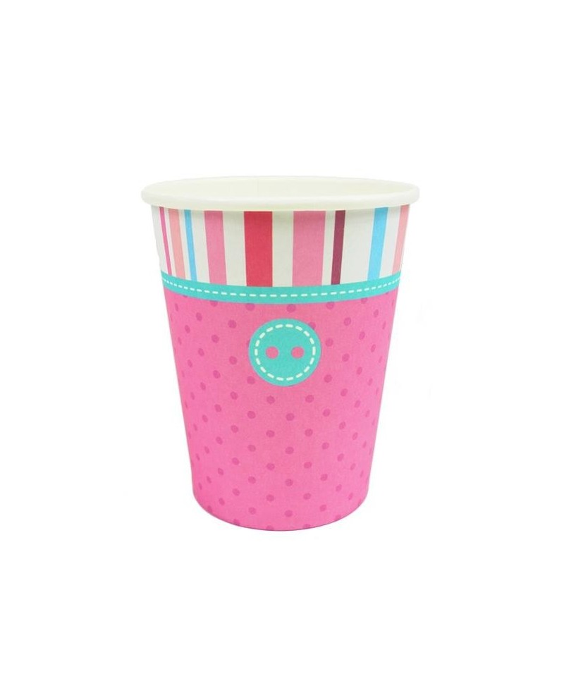 Ružové papierové poháre s motívom koláčikov sú perfektným doplnkom oslavy narodenín.