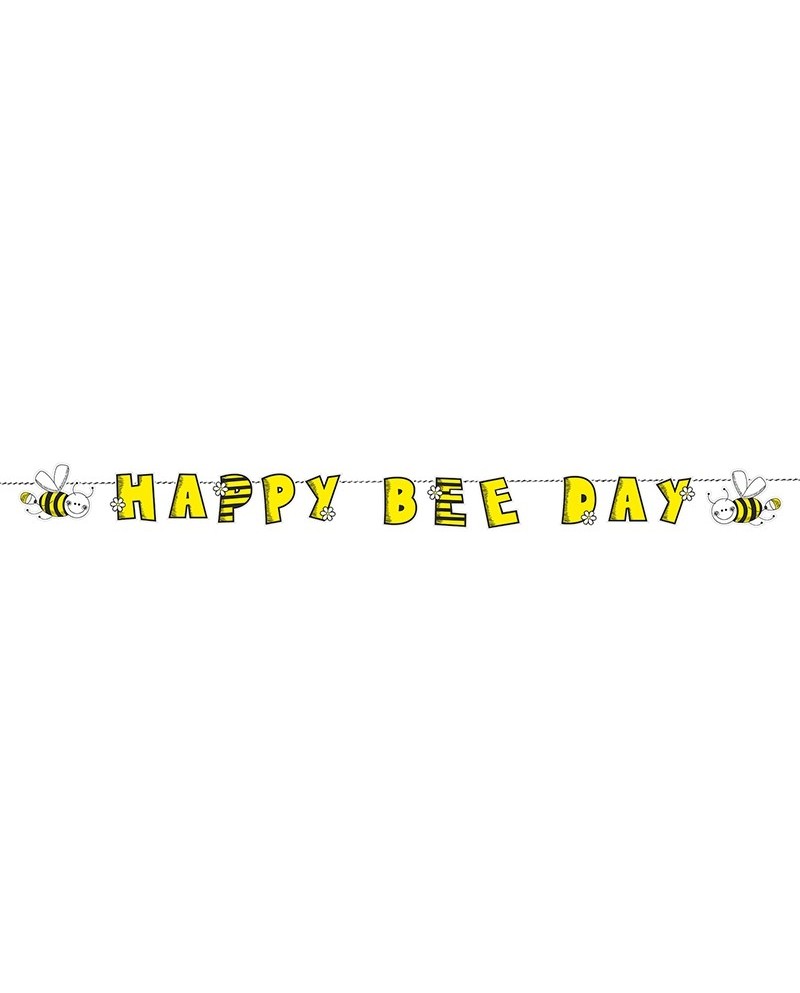 Papierový banner s napísom Happy Bee Day s motívom včielok je perfektnou dekoráciou na oslavy narodenín. Banner je v žlto - čiernom prevedení, pričom na začiatku aj na konci je včielka.