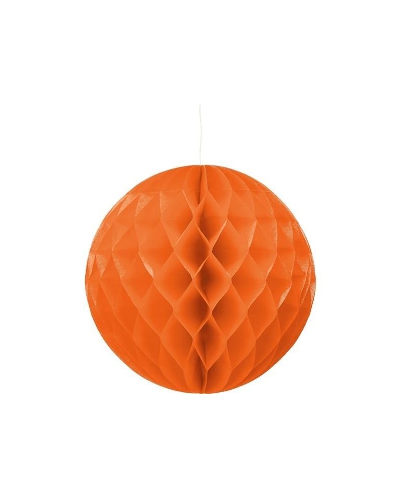 Oranžová visiaca dekorácia v tvare gule, ktorá je ideálnou ozdobou narodeninovej oslavy.