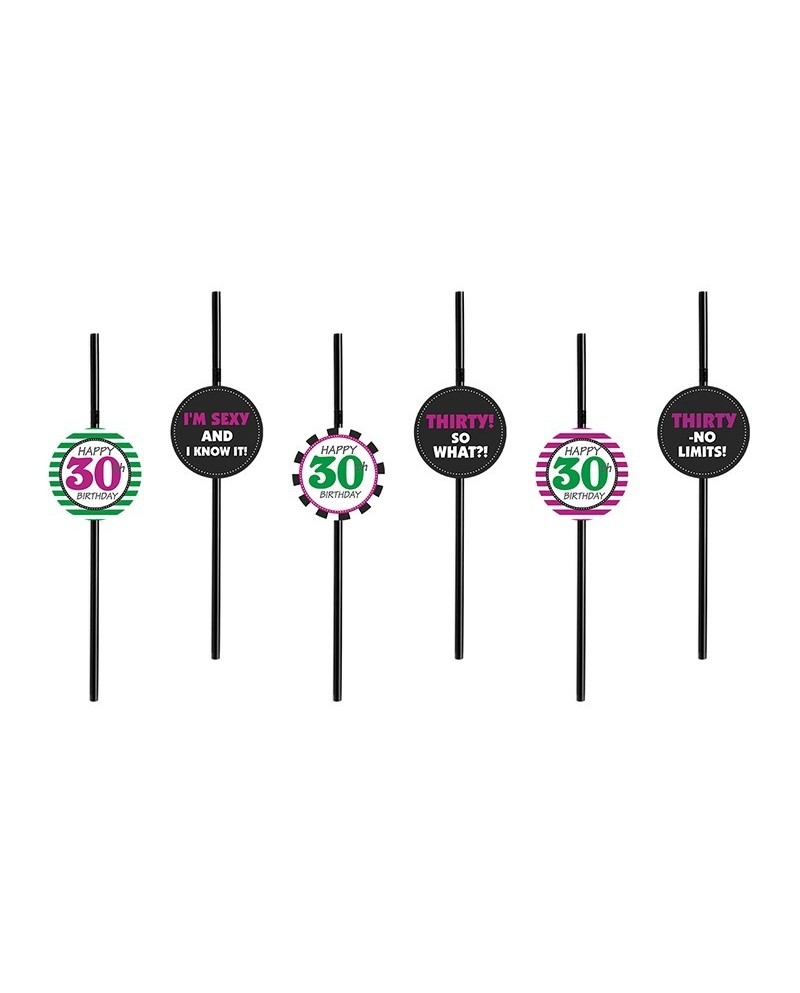 Plastové slamky s papierovou dekoráciou motívu 30. narodenín.