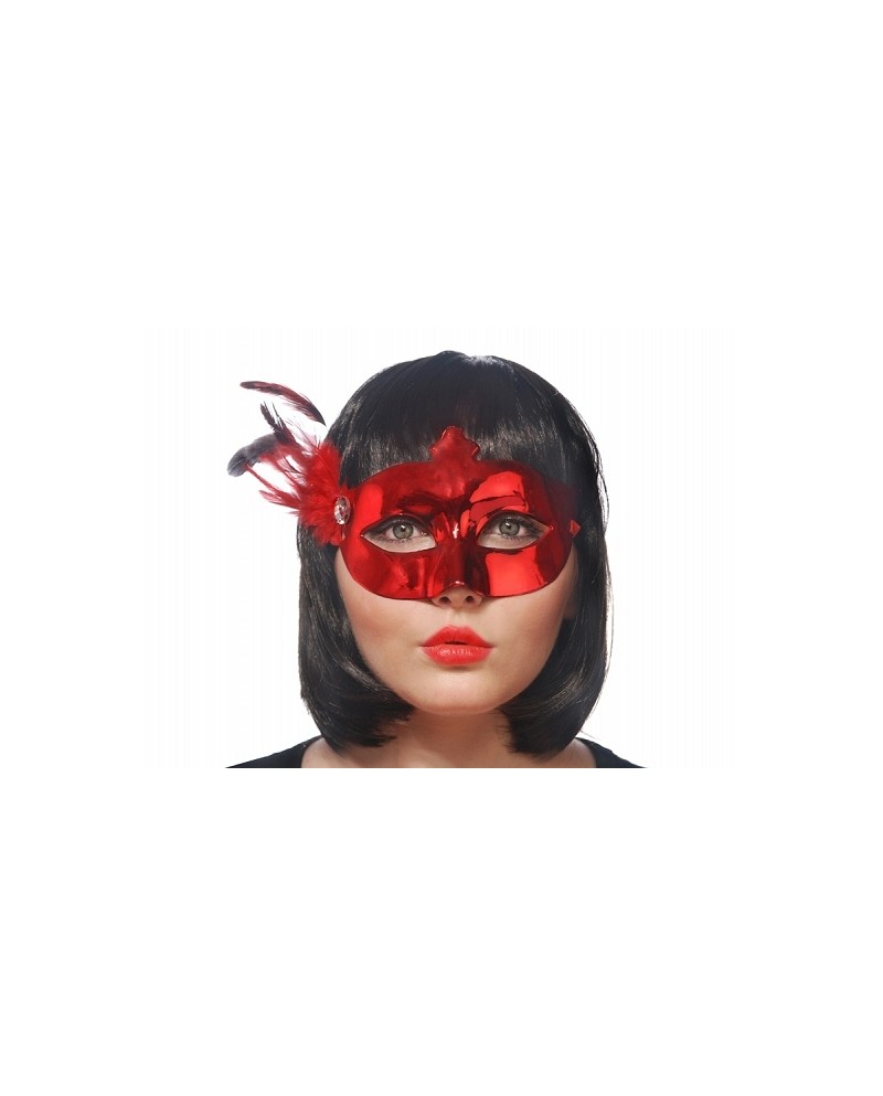 Umelá červená karnevalová maska pre dospelých s pierkom je perfektným doplnkom kostýmu, pomocou ktorého skryjete svoju identitu a pridáte kúsok tajomna.