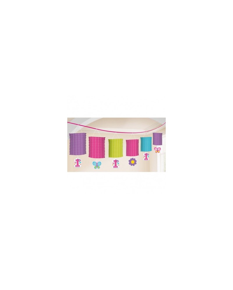 Papierová girlanda v tvare farebných visiacich lampiónov, na ktorých je číslica 1 alebo kvety či motýle, je ideálna na oslavu 1. narodenín.