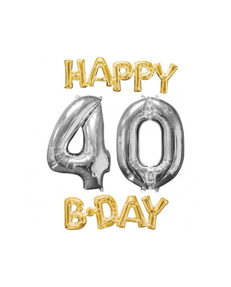 Fóliový balón Happy Bday 40 zlato strieborný