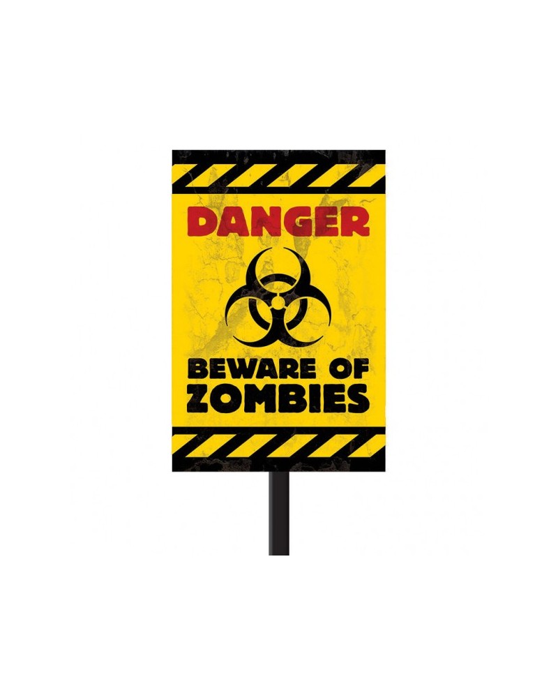 Plastová tabuľa s nápisom Danger: Beware of zombies (Varovanie: Dajte si pozor na zombíkov) je perfektným doplnkom halloweenskej party.