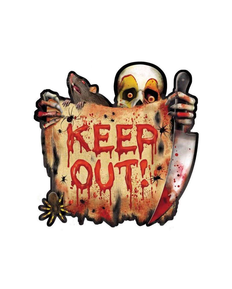 Papierová dekorácia v motíve strašidelného klauna s nápisom Keep out! (držte sa vonku!) je perfektným doplnkom halloweenskej party.