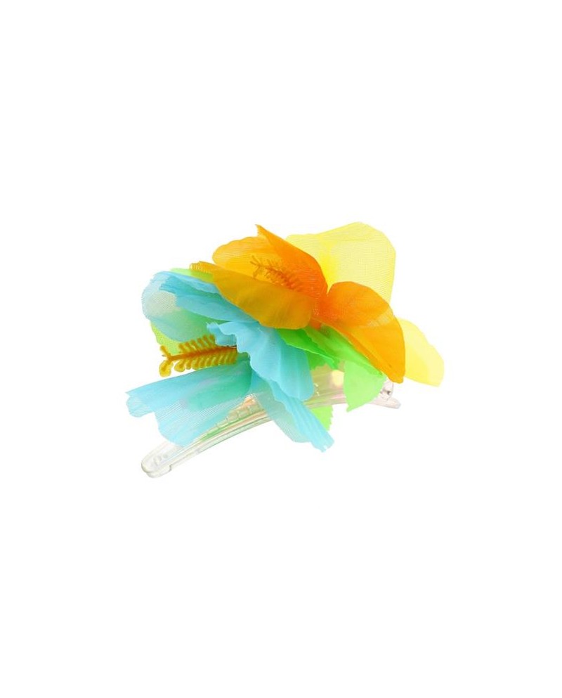 Spona do vlasov v tvare 3 Havajských kvetov v modrej, žltej a oranžovej farbe.
