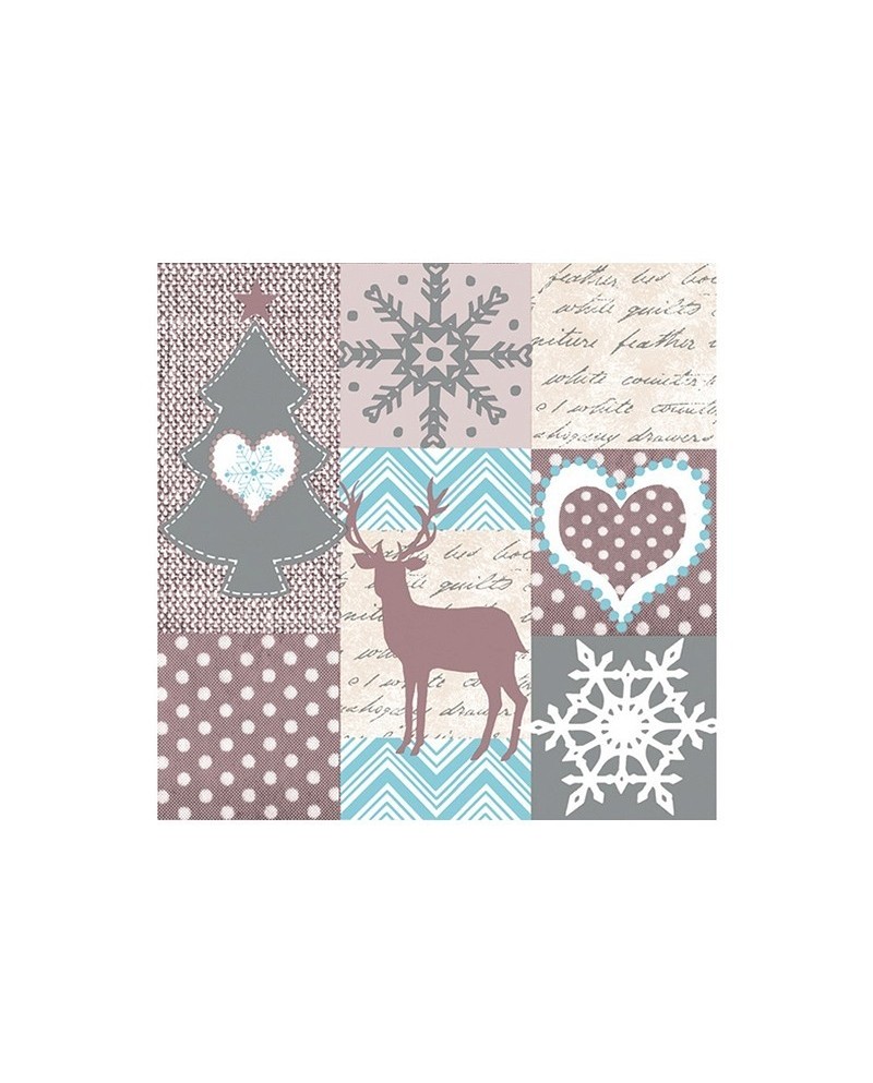 Béžovo-modré papierové servítky s vianočným motívom.
