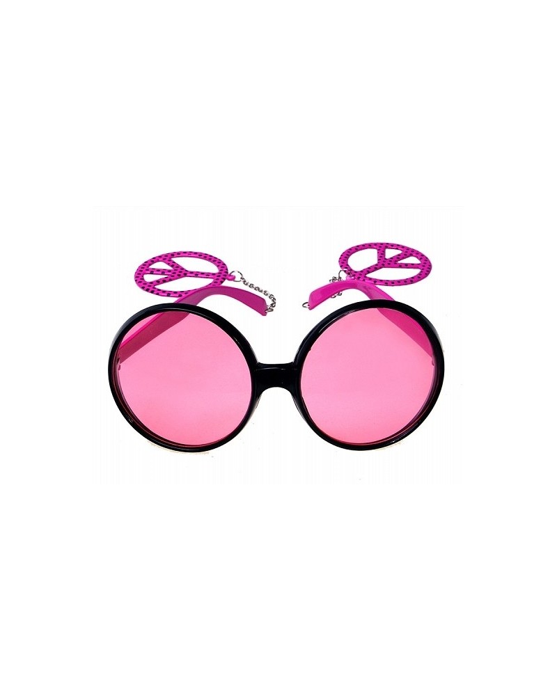 Plastové party okuliare v ružovej farbe, pričom na konci sú šnúrky so znakom Peace, sú ideálnym doplnkom oslávencovho outfitu.