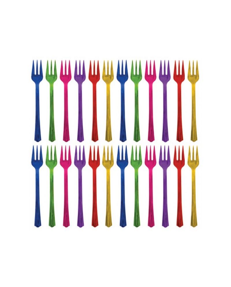 Malé plastové vidličky v rôznych farbách sú ideálne na narodeninové oslavy.