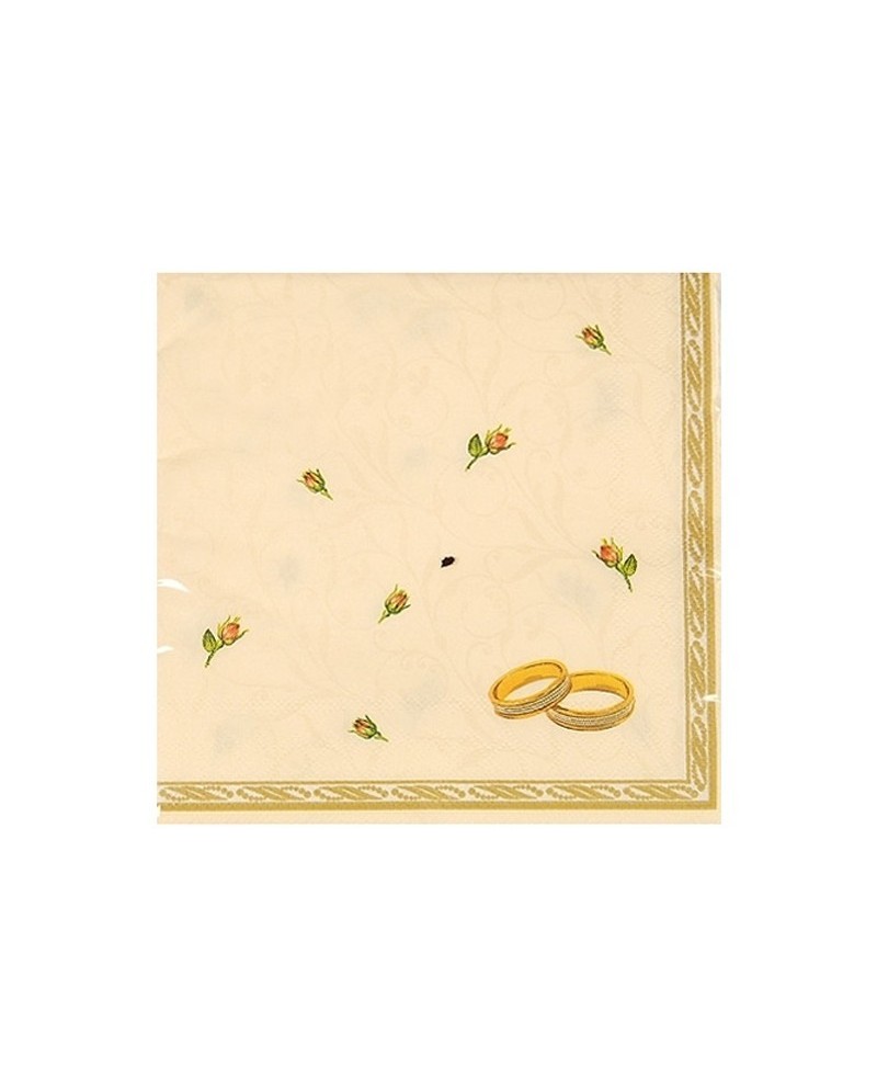 Krémové papierové servítky s motívom obrúčok sú ideálnym doplnkom vašej svadby.