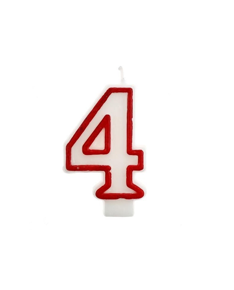 Sviečka v tvare čísla "4" s červeným okrajom.