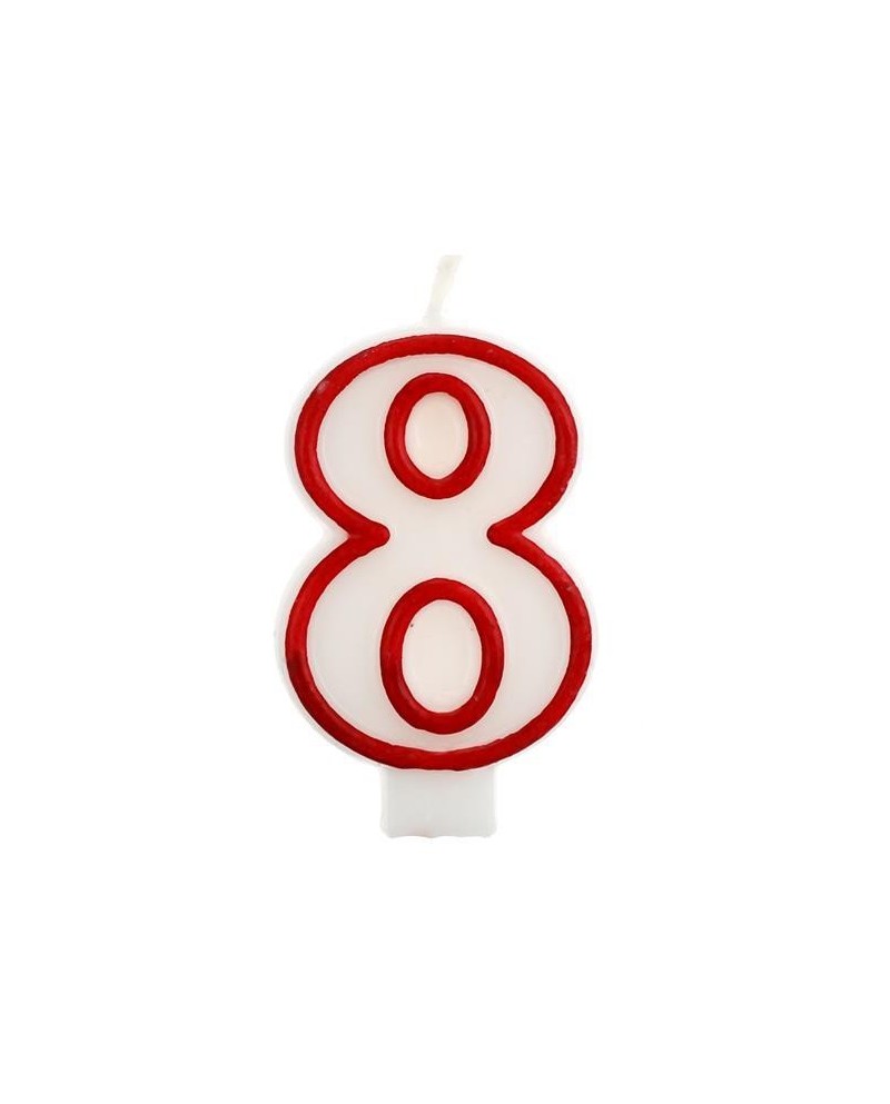 Sviečka v tvare čísla "8" s červeným okrajom.